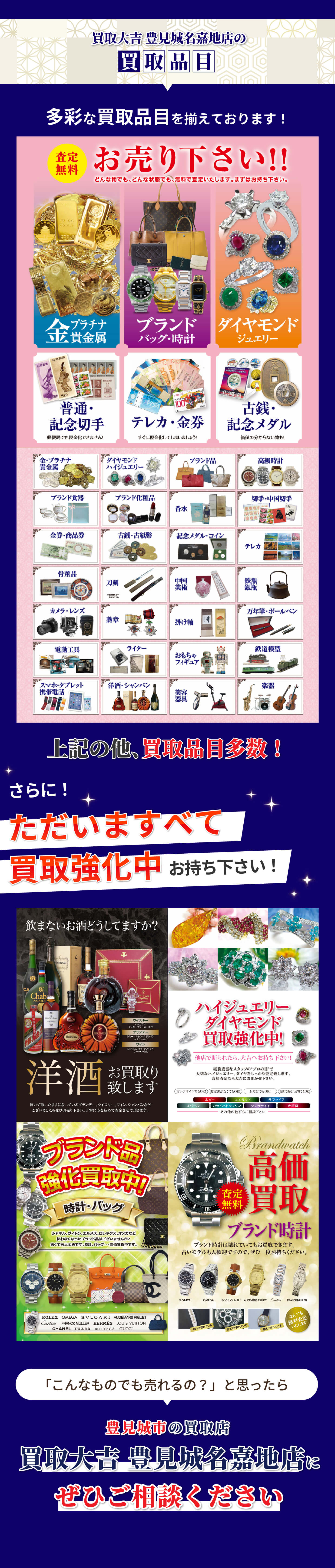 | 事業内容 | 買取業(ブランド品、貴金属、時計、骨董品など) |